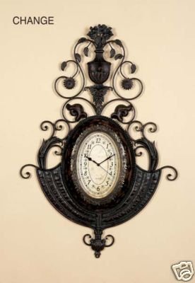 This contemporary art piece also serves as a clock. It is made with high quality decorative metal and it's crafted ever so perfectly. If this were hanging on your wall, you would always want to check the time. It also works very well with many different themes of decor. This decor is very large, measuring approximately 32x21".